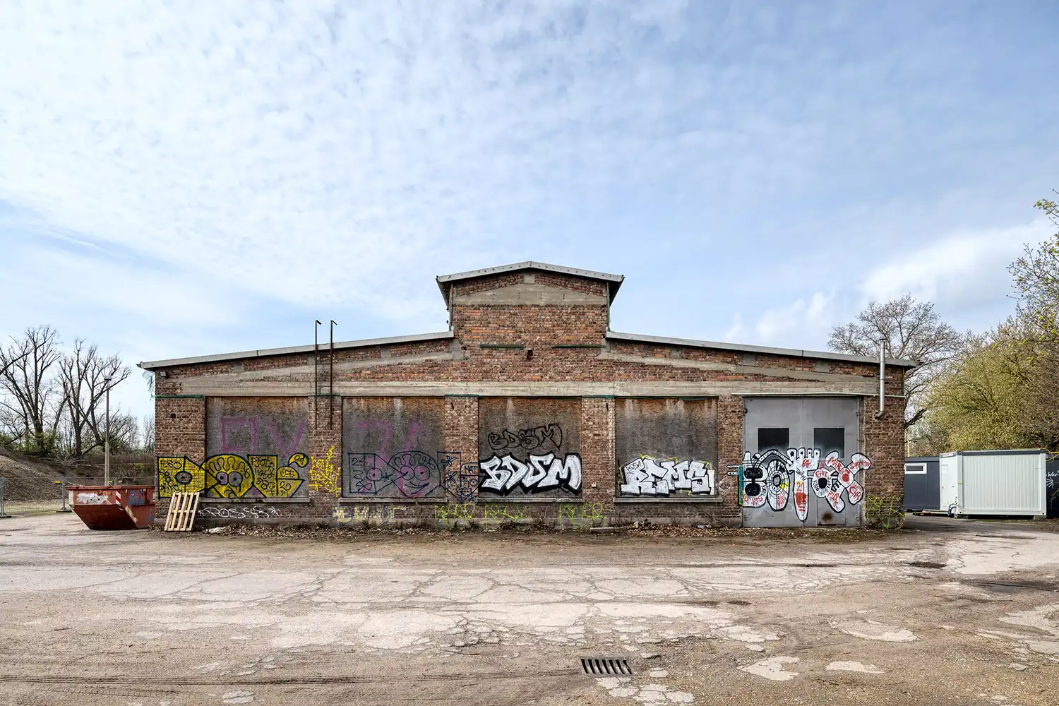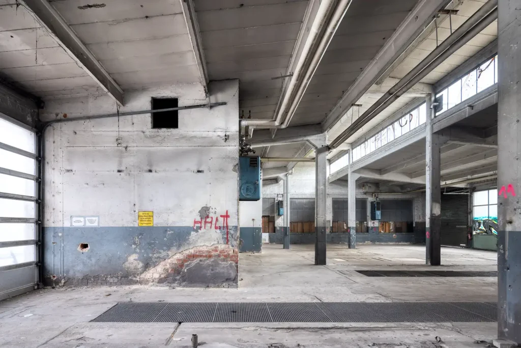 Fläche zum Gestalten und Aufhängen von großen Transparenten oder zum Einüben einer Choreographie. In den Räumen von Rollbrett e.V. wird eine Skate-Anlage entstehen, im Hallenteil für die Parkour-Szene kann an variablen Einbauten trainiert werden. Ein großer Durchgang zieht sich durch das lange Gebäude und verbindet die Parkbereiche auf der Nord- und Südseite der Hallen. Für das nicht-kommerzielle Nutzungskonzept werden günstige Flächen geschaffen, hierfür werden am bestehenden Gebäude möglichst wenige Änderungen vorgenommen.